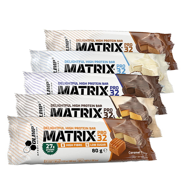 شكلات پروتئین بار ماتریکس 32 الیمپ یک جایگزین غذایی برای کنترل وزن همراه با با شیرین کننده ها می باشد. این شکلات بار از برند الیمپ در 5 طعم خوشمزه و شگفت انگیز موجود است.