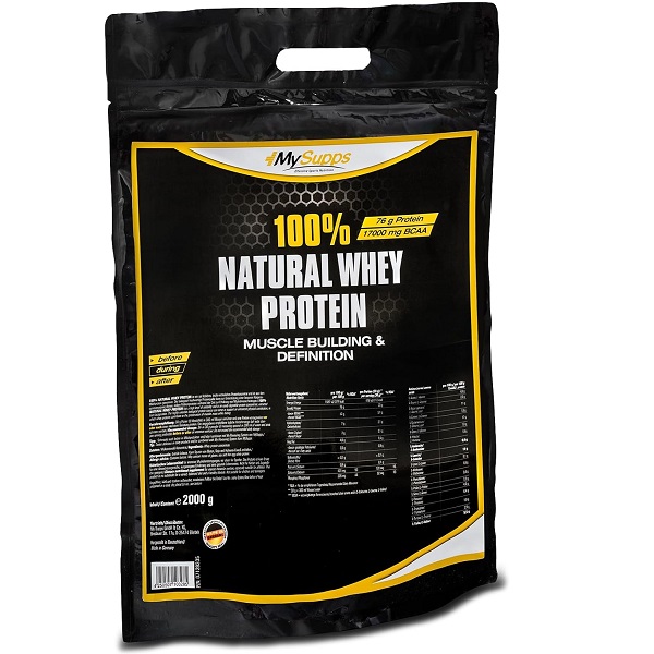 نچرال پروتئین وی مای ساپس My Supps 100 % Natural Whey Protein یک کنسانتره وی با کیفیت بالا و بدون شیرین کننده و افزودنی است. My Supps 100% Natural Whey Protein از پروتئین شیر خالص ساخته شده است که نشان دهنده نسبت بالای BCAA است (17.6 گرم در هر 100 گرم محصول).