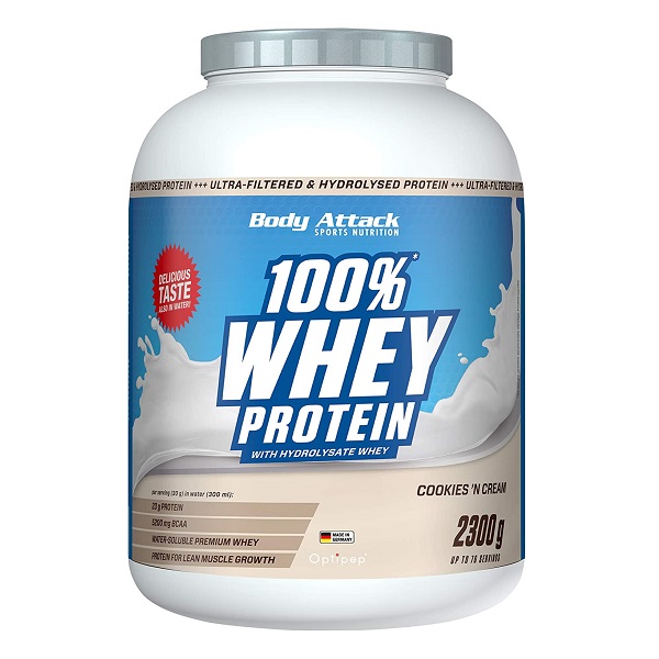تقریبا 24 گرم پروتئین از پروتئین های وی، تنها 2.3 گرم کربوهیدرات و تقریبا 1.5 گرم چربی در هر وعده ارائه می شود. علاوه بر این، پودر پروتئین وی بادی اتک حاوی BCAA است که برای ورزشکاران بسیار مهم است.