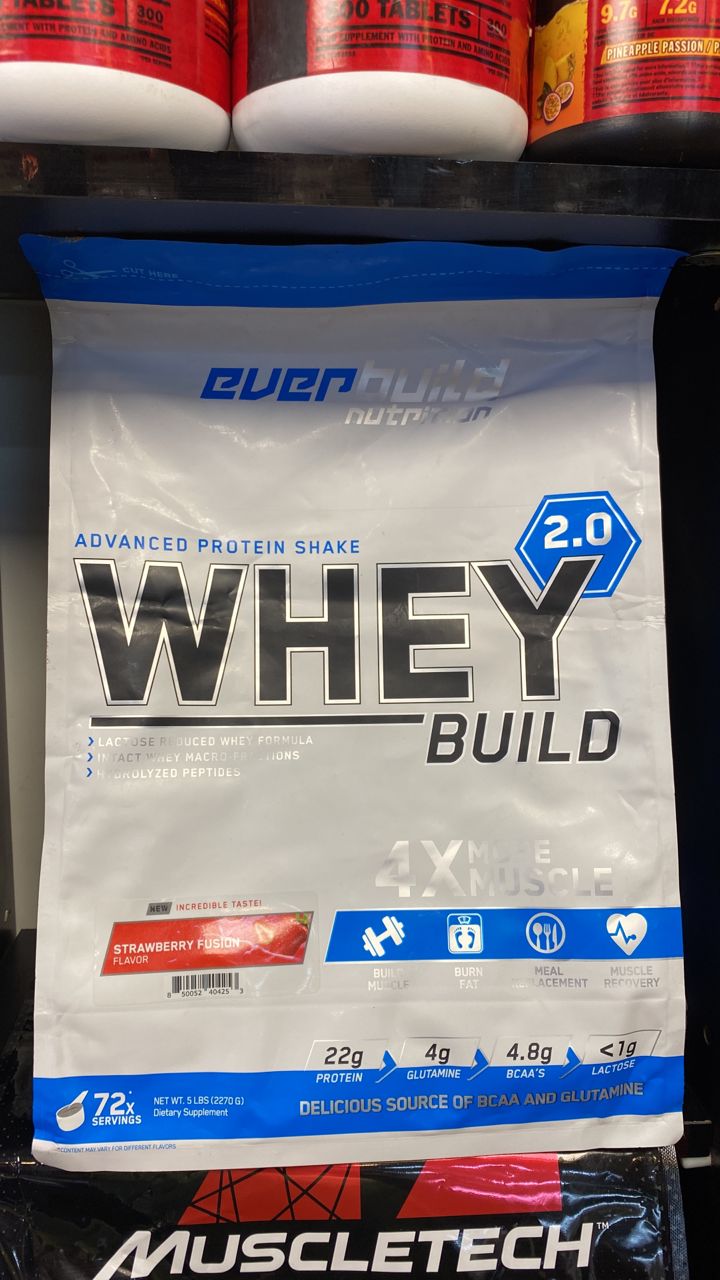 Everbuild Whey Build حاوی پپتیدهای با زنجیره کوتاه بسیار زیستی برای جذب سریع پروتئین است که شروع به سوخت رسانی به عضلات شما در سریع ترین زمان ممکن می کند. یک وعده حاوی حداکثر 22 گرم پروتئین است که برای شروع فرآیندهای سنتز پروتئین که لوسین مسئول آن است کافی است. پروتئین وی منبع عالی از اسیدهای آمینه EAA و BCAA است که مسئول توانایی رشد توده عضلانی هستند. این محصول حاوی چربی پایین، حداقل مقدار قند است و با کلسیم، پتاسیم، آهن و ویتامین D غنی سازی شده است.